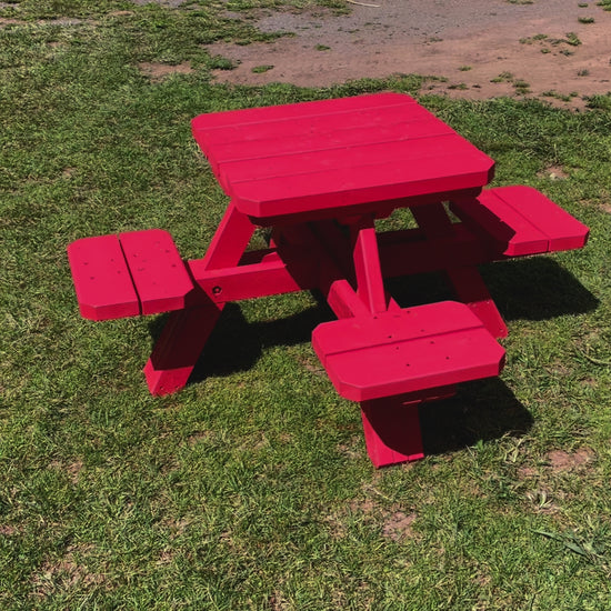 The Kid's version of the popular four seat picnic table is finally here. This plan makes a very strong and beautiful table that goes along quite nicely with our Bistro table or out Pub style table.
